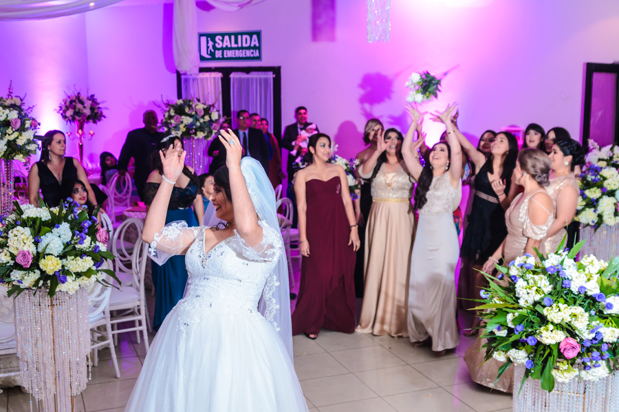 Luego, la ceremonia continuó con emotivos discursos, la tradicional liga y por supuesto, el esperado ramo para las amigas solteras.