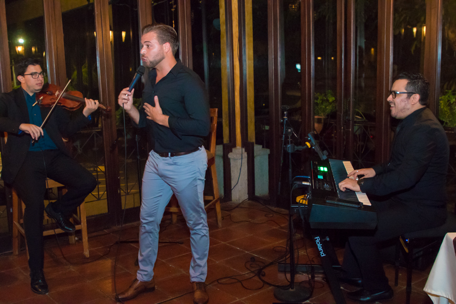 Ache Rey, un tenor lírico de Argentina, deleita a una exclusiva clientela del cotizado restaurante en la esperada velada de tango, vinos, alegría y ritmos bohemios eternos