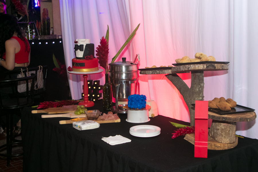[/vc_column_text][thb_gap height=»30″][vc_column_text]Para adornar el ambiente, escogió mesas cóctel, exóticos Ginger carmín, salas lounge y el predominante tono rojo por diferentes rincones. No faltó la isla de aperitivos, que fueron dispuestos entre detalles rústicos.Además, lo mejor en licor fue parte de la noche de fiesta, propicio para los brindis que se replicaron una y otra vez, todos, en honor a Omar Artica.