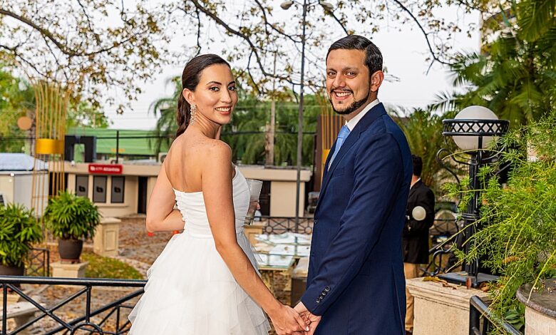 La novia ha optado por un vestido white pearl en corte A engalanado con apliques de encaje y pedrería