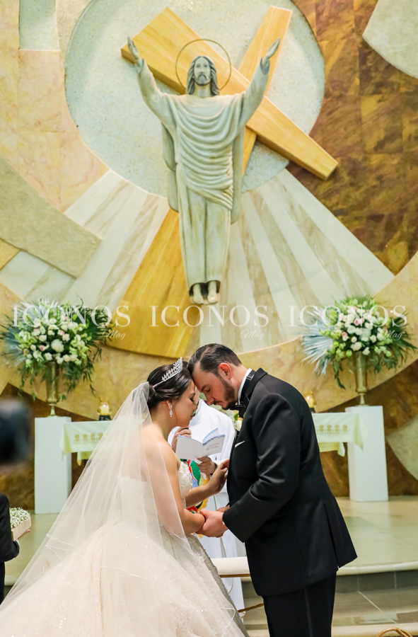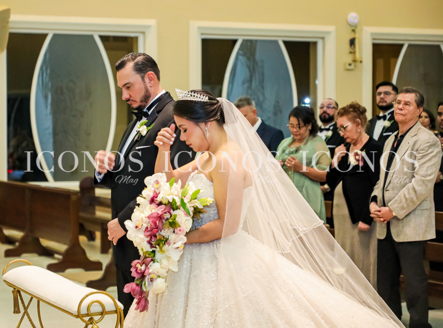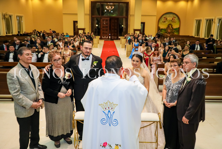 A las 6:00 pm, la iglesia La Sagrada Familia de Fundación Mhotivo ha recibido a los novios, quienes han sido bendecidos con el sacramento nupcial católico.