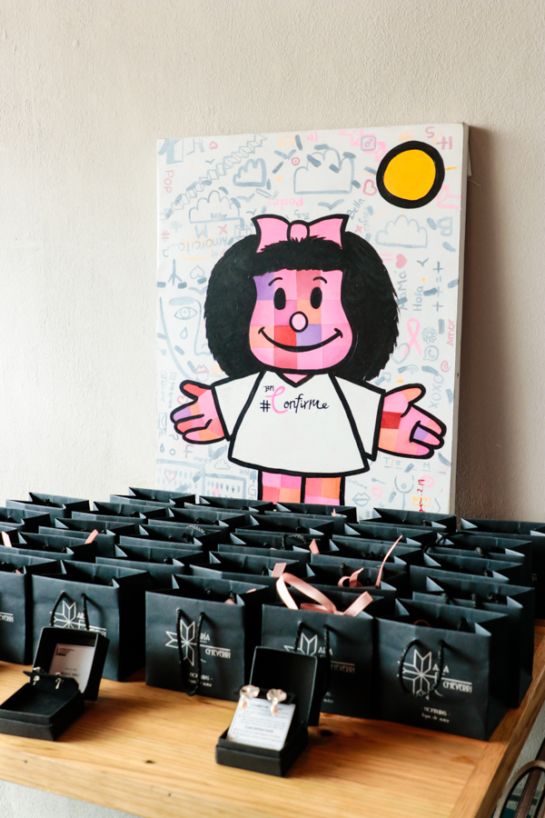 Durante el evento, la orfebre María Echeverri expuso una colección cápsula de sus diseños y todo, íntegramente, lo donó al comité de la Liga.