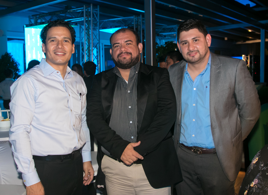 Jimmy Tovar, César Rosenthal y Leo Castejón en la fiesta de lanzamiento de la programación de R Media y Canal 11. Foto Gerardo E. Barrera