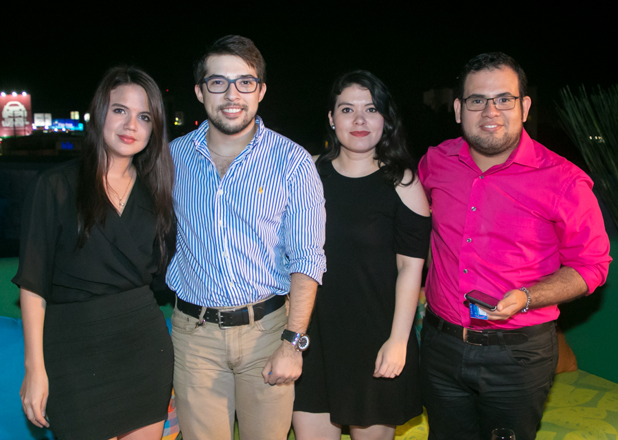 Karla Pineda, Arlon Oseguera, Pamela Urquía, Dany Cárcamo, Esther Álvarez y Wendy Rodas se divirtieron y, además, compartieron en la esperada fiesta de R Media y Canal 11. Foto Gerardo E. Barrera