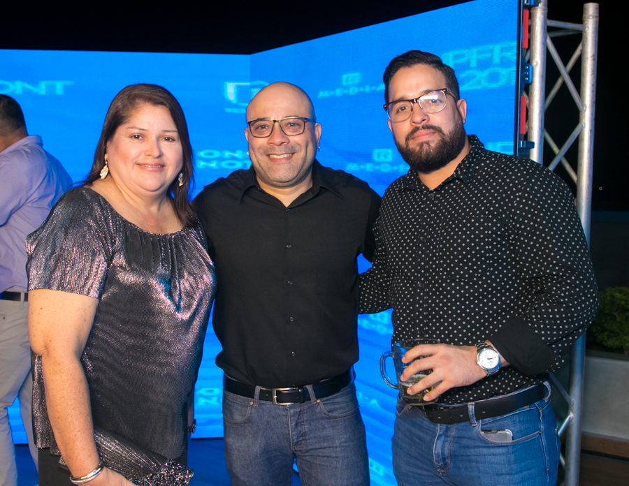 César Rosenthal Hidalgo, Adda Molina y Carlos Rosenthal Hidaldo, así de felices en la gran fiesta de R Media y Canal 11. Foto Gerardo E. Barrera