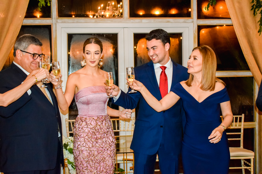 Tras el protocolo, padres y enamorados han presidido el brindis, donde Rebe & Tino, han recibido elogios y congratulaciones por su amor y decisión de ser esposos.