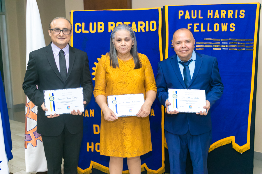Damario Reyes, Isabel María Echevarría y Luis Girón fueron galardonados por el decano club, en una solemne velada de fraternidad rotaria sampedrana