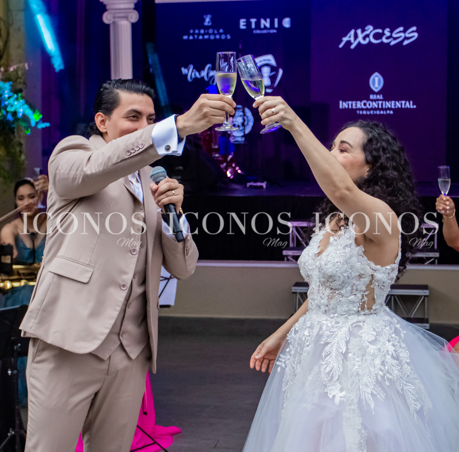 El festejo se ha realizado al aire libre y los novios han elegido el famoso Blu bar y el área de la piscina del hotel InterContinental Tegucigalpa para compartir con sus selectísimos invitados.