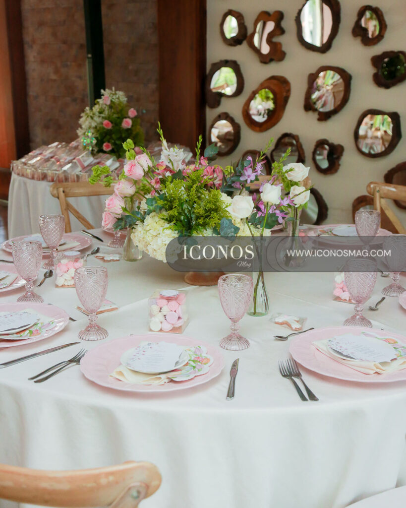 La recepción ha sido ornamentada por la event planner Denesse González, creando un ambiente acogedor para los allegados. Lirios, orquídeas en tonos rosa y blanco han embellecido la estancia.