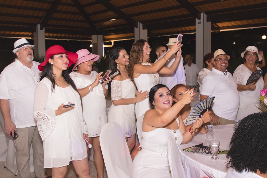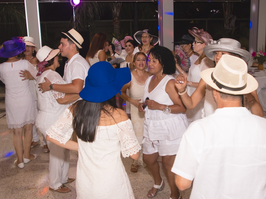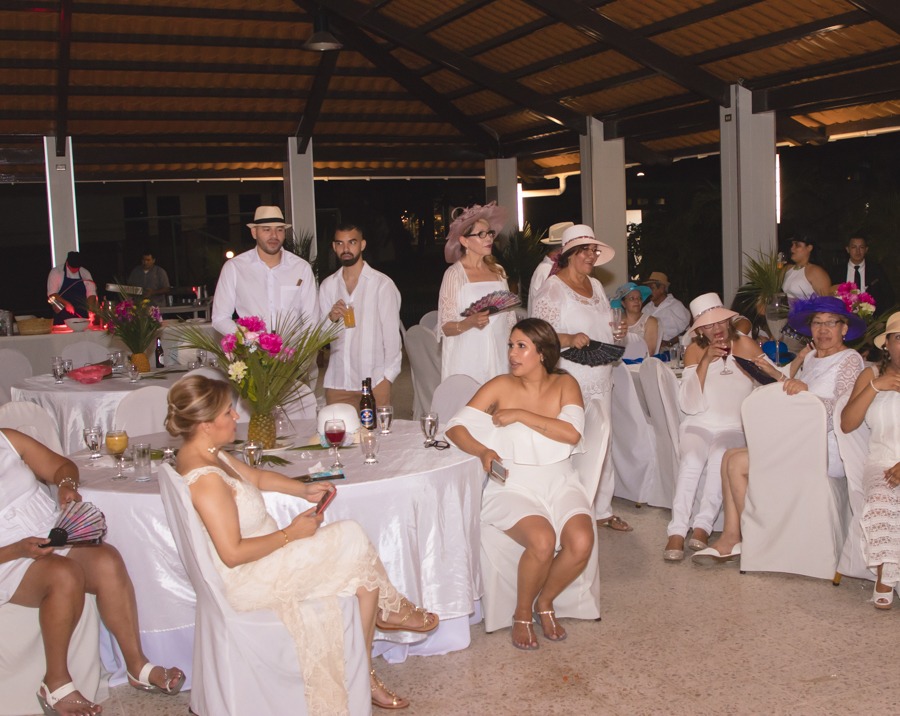[/vc_column_text][thb_gap height=»30″][vc_column_text]Los familiares y amigos de la pareja, disfrutaron a más no poder de una velada inolvidable, en la que también degustaron las mejores delicias de la gastronomía local.Todos los invitados, llegaron a la reunión de lo más casuales y cómodos, con atavíos perfectos para celebrar a lo grande en el agradable clima nocturno de la ciudad. Reinó el color blanco, los sombreros y los abanicos.[/vc_column_text][thb_gap height=»30″][thb_image image=»37038″][vc_column_text]