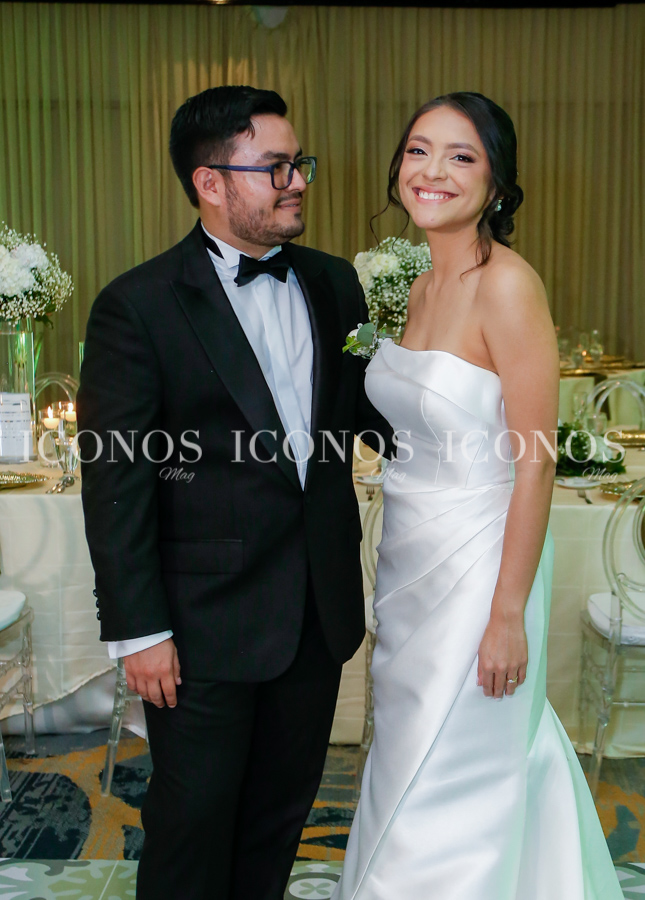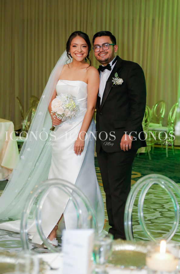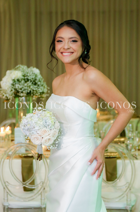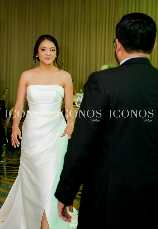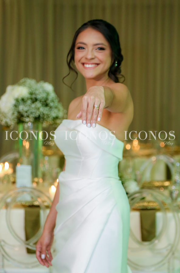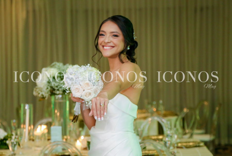 La novia se ha robado las miradas de la noche con su vestido blanco de líneas clásicas y elegantes