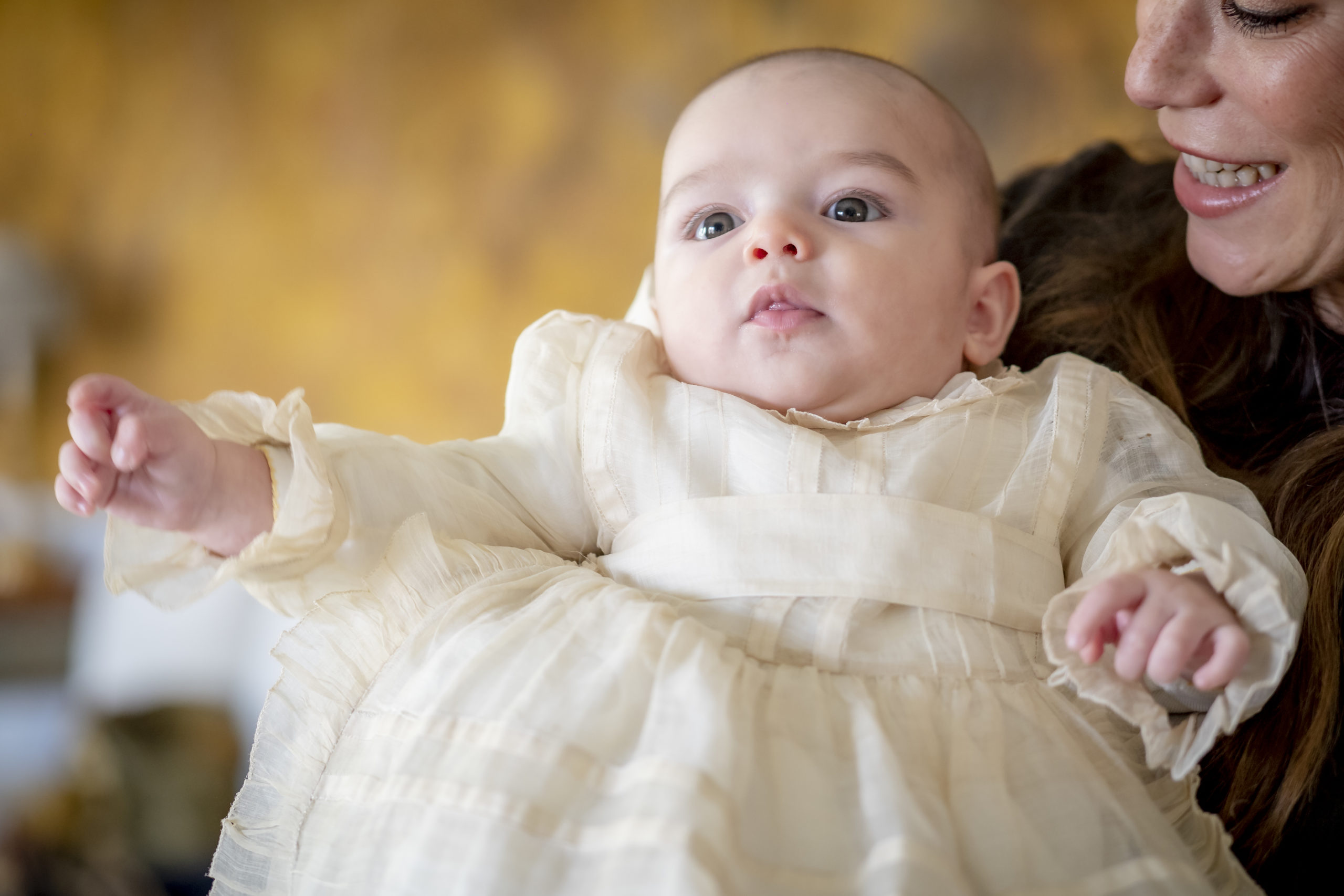 El bebé fue bendecido junto a su prima Inés María Moreno de Barreda de Herrera en España