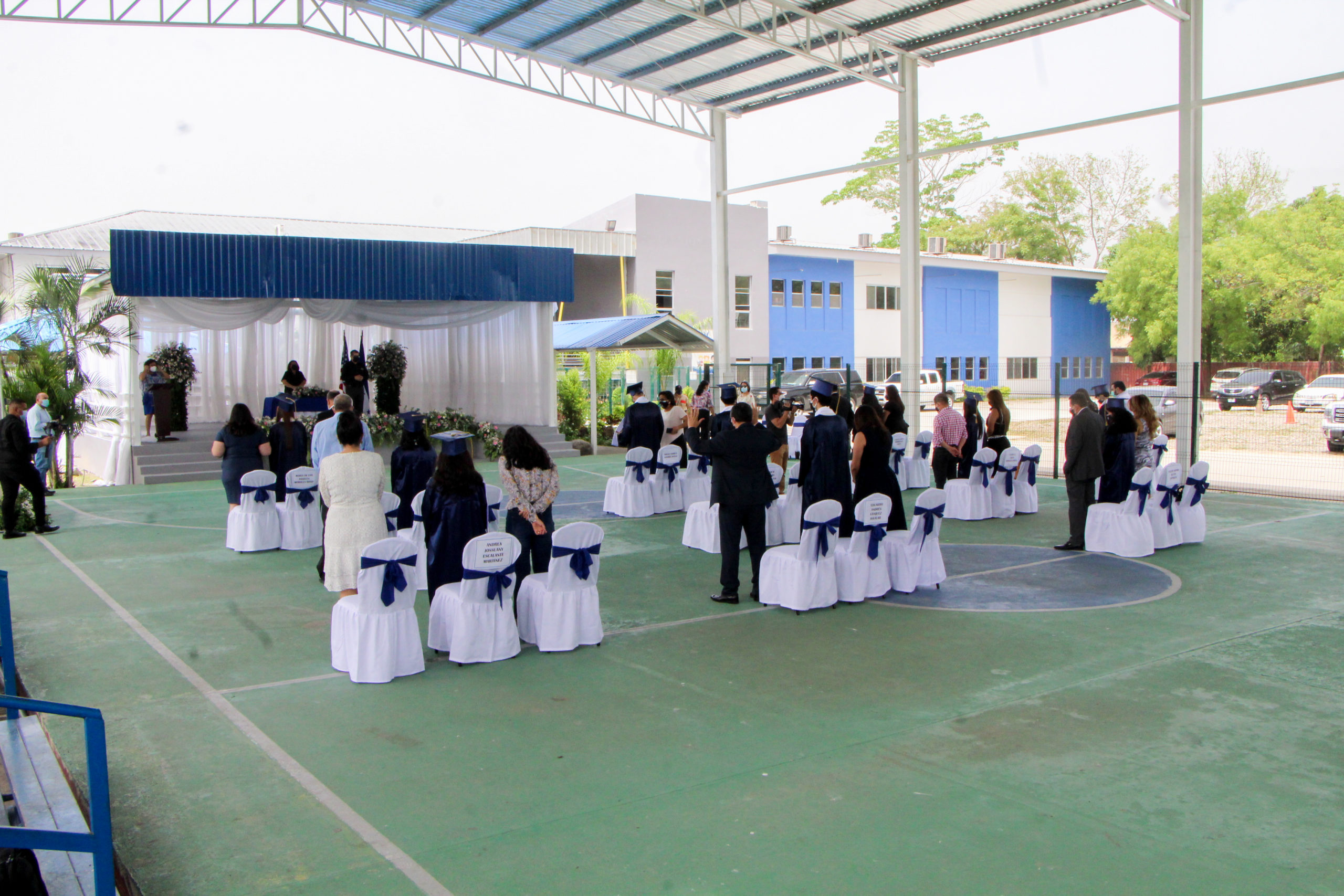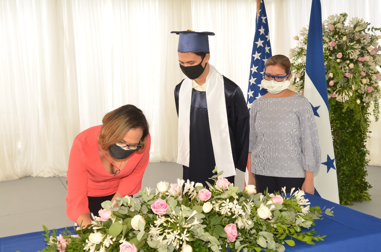 Con estrictas medidas de bioseguridad y distanciamiento humano, así fue realizada la entrega de títulos. La estudiante Julissa López fue premiada como la mejor alumna