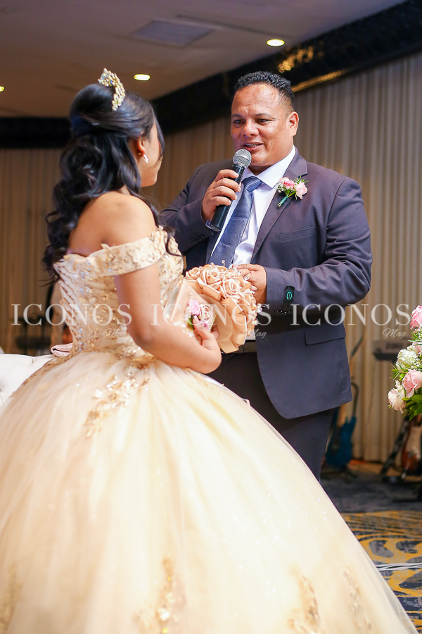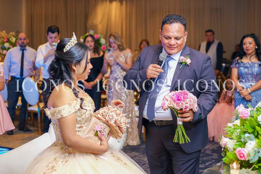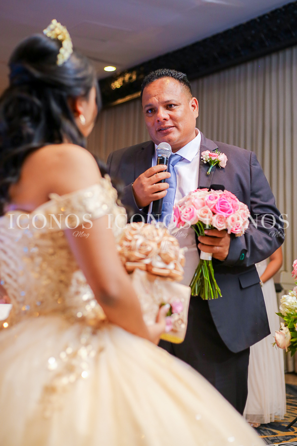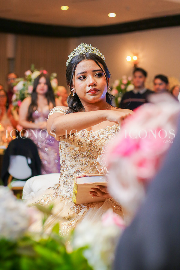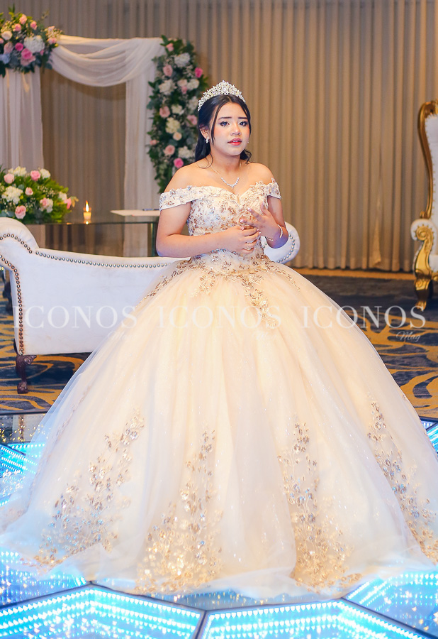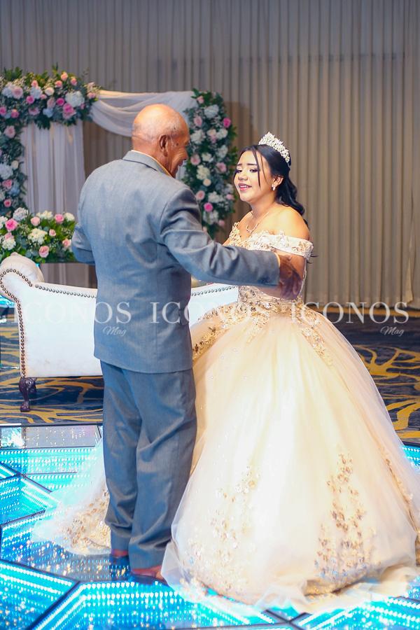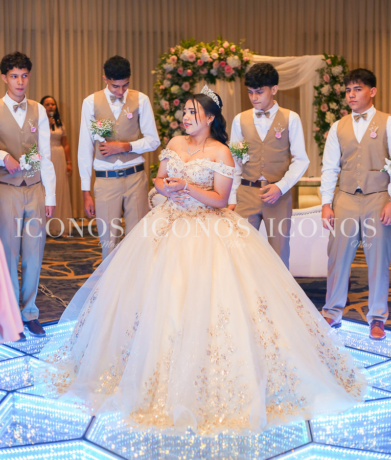 La feliz quinceañera ha robado miradas con su look de princesa millennials con vestido vaporoso