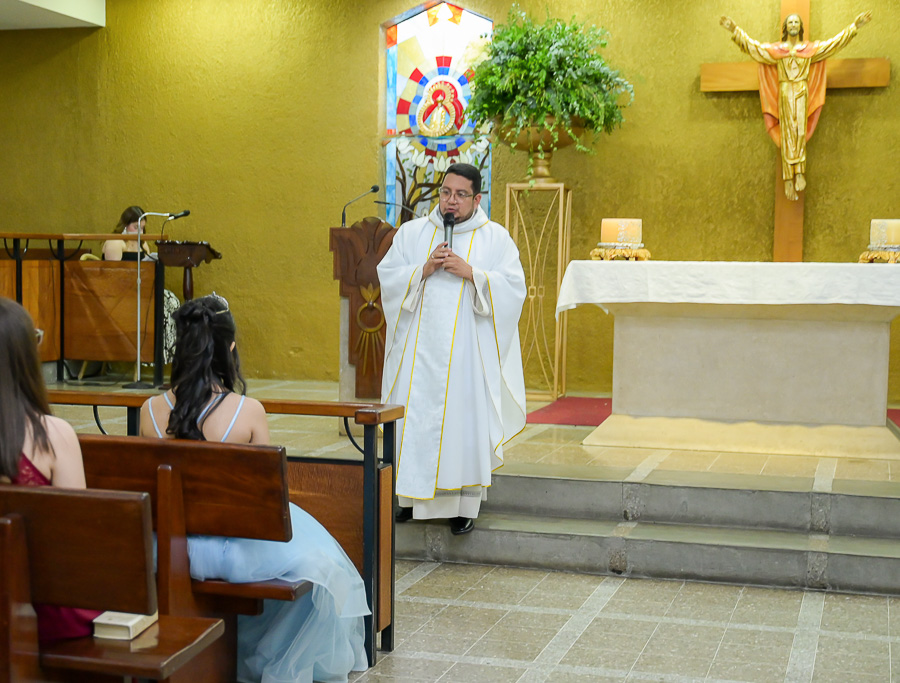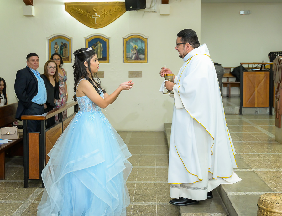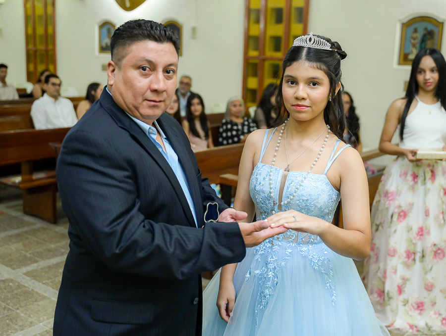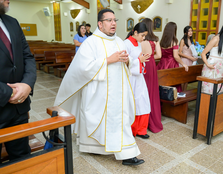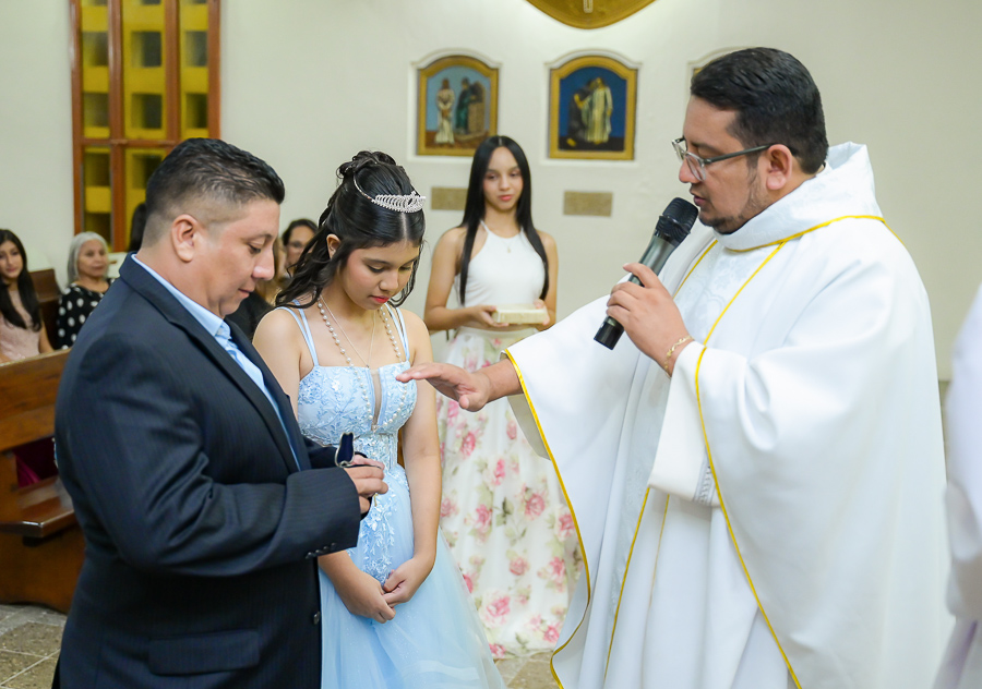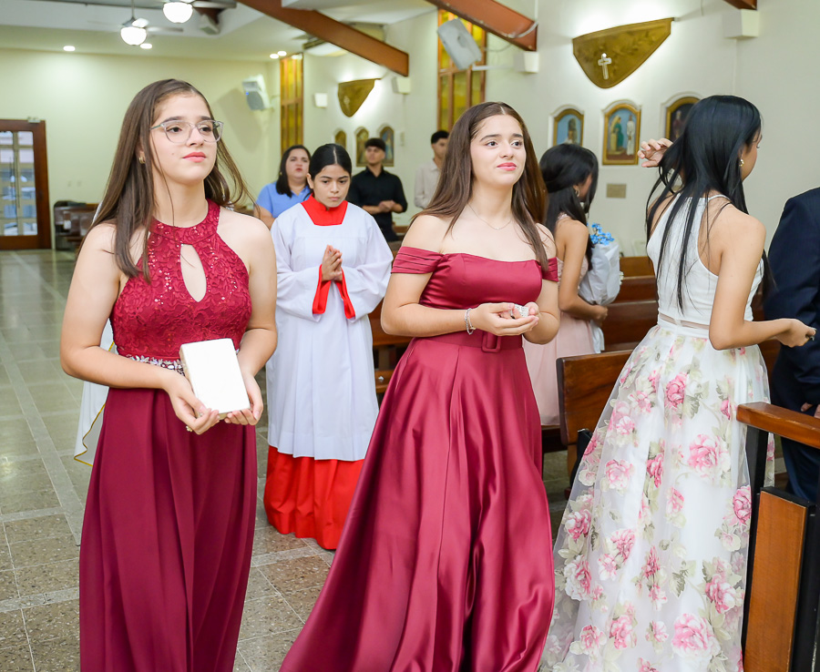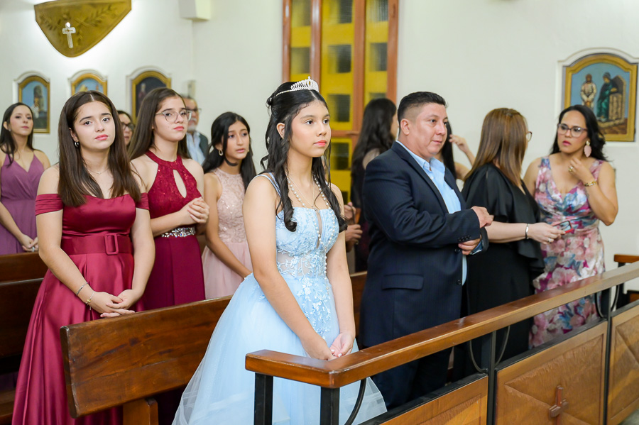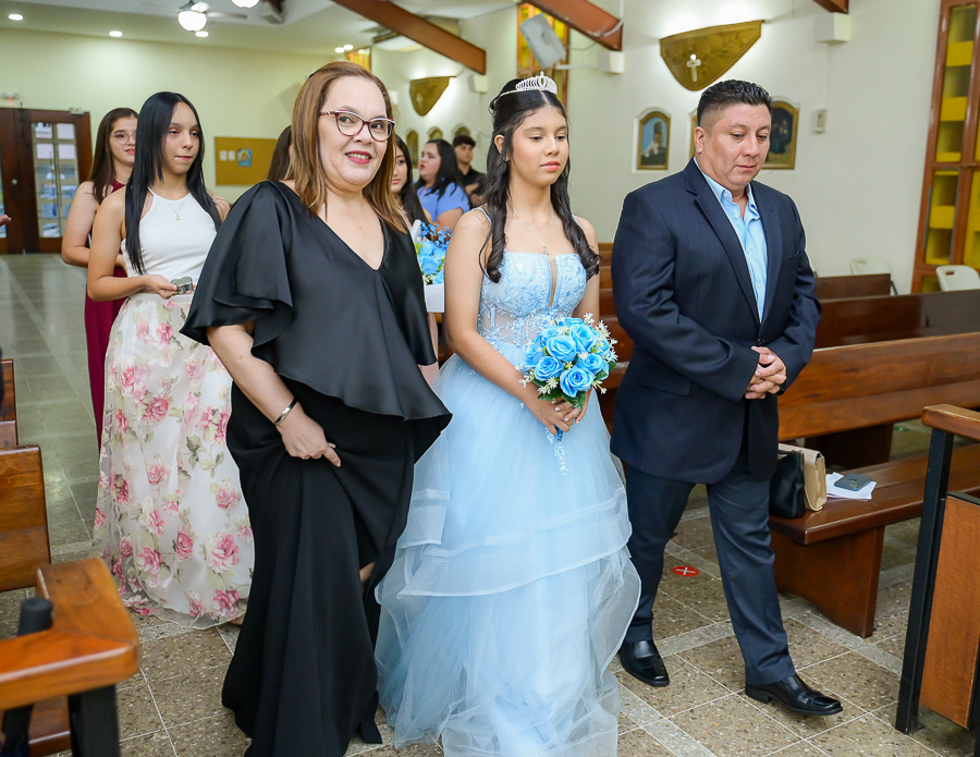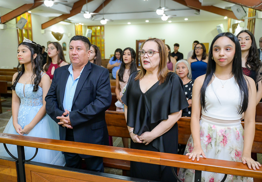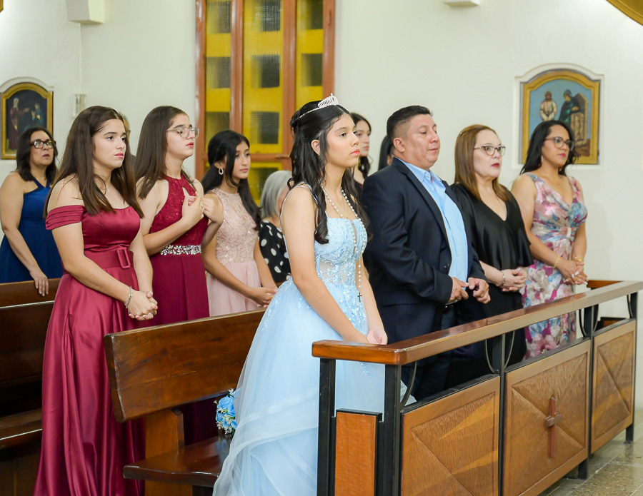 La parroquia Nuestra Señora de Suyapa ha acogido a los invitados para la misa por el debut en sociedad de la festejada