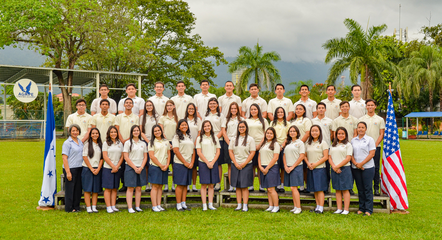 La Clase ACA XX posa para su retrato oficial como nuevos bachilleres bilingües de su promoción Blanca Jeannette Kawas. Julissa López es la mejor alumna de los 36 graduados