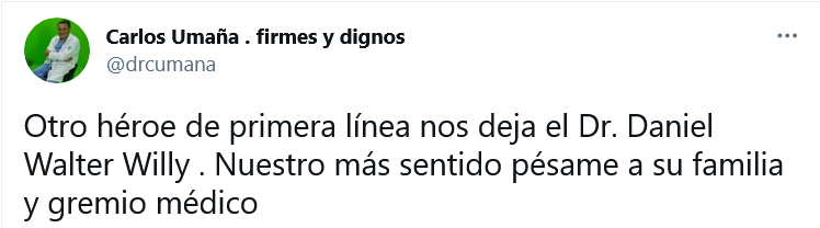 SAN PEDRO SULA. El gremio de médicos de Honduras continúa de luto. Ha fallecido el doctor Daniel Walter Willy.