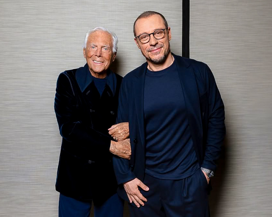 El caballero Dell’ Orco trabajó hombro a hombro con Armani, dando vida y reconocimiento a la moda masculina. Ahora ante la partida de Armani, Pantaleo en compañía de Roberta Armani mantendrán vivo su legado.